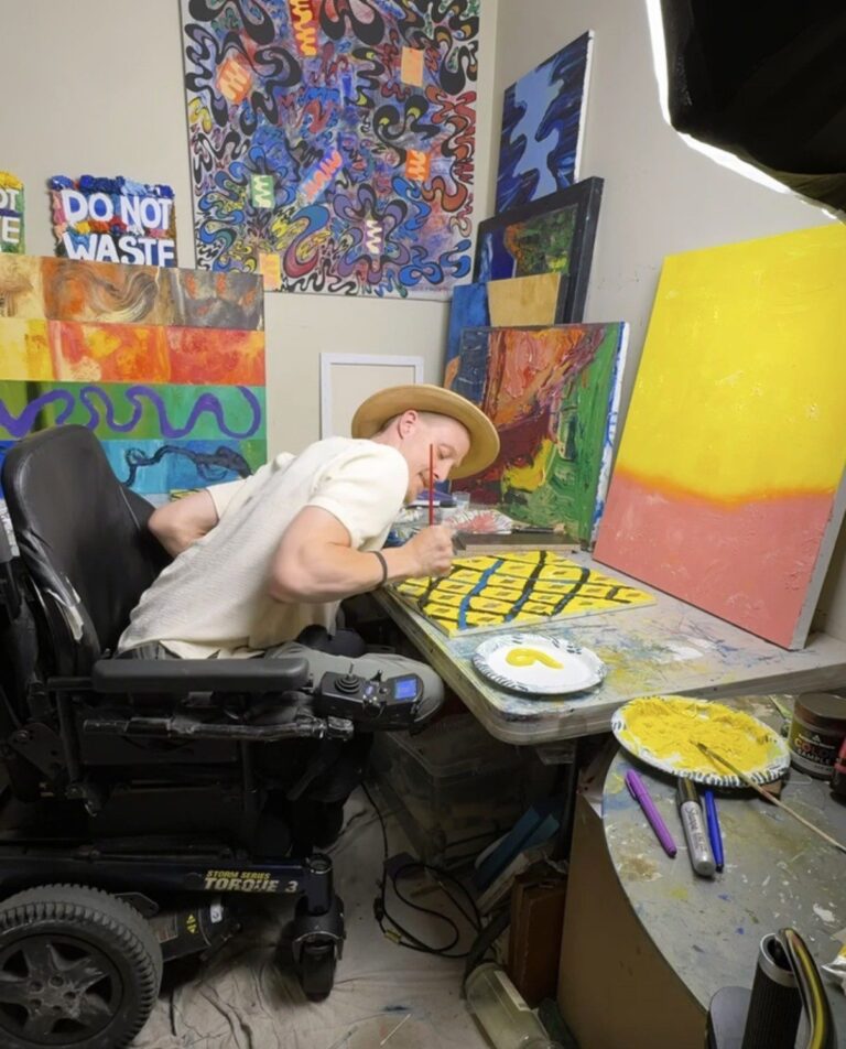 Matthew is an artist whose oil paintings serve as a visual autobiography, reflecting his life’s journey and inner experiences. Born in Florida and raised in New York from the age of two, Matthew earned a degree in art history and political science from Fordham University. His work is deeply shaped by his lived experience with cerebral palsy and by the ongoing dialogue between his physical reality and society’s perceptions of disability.