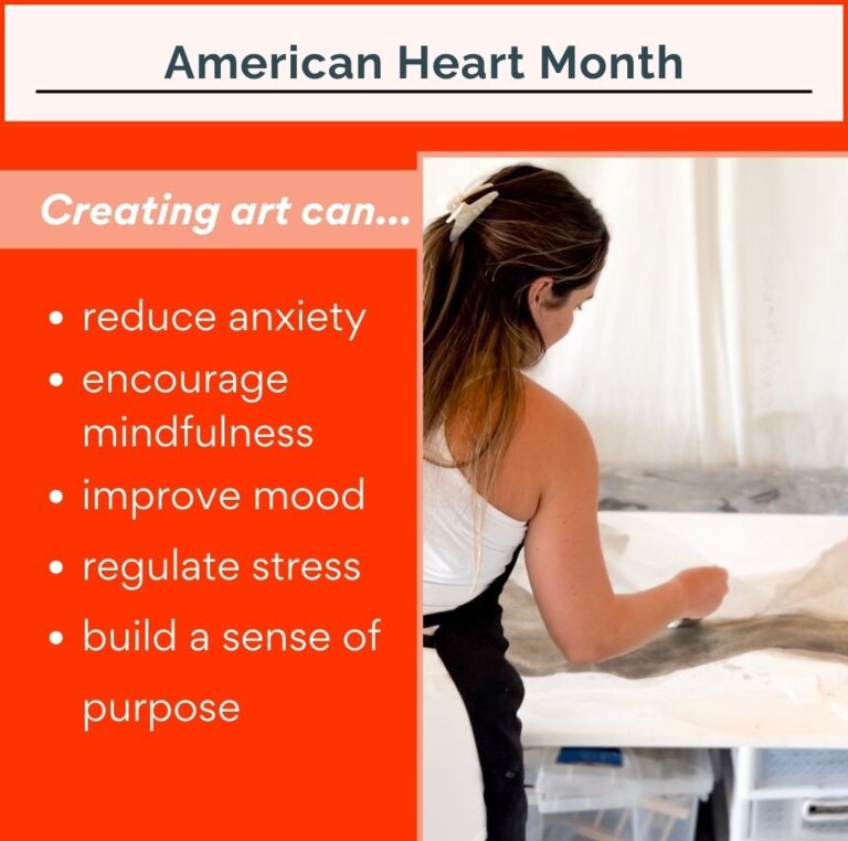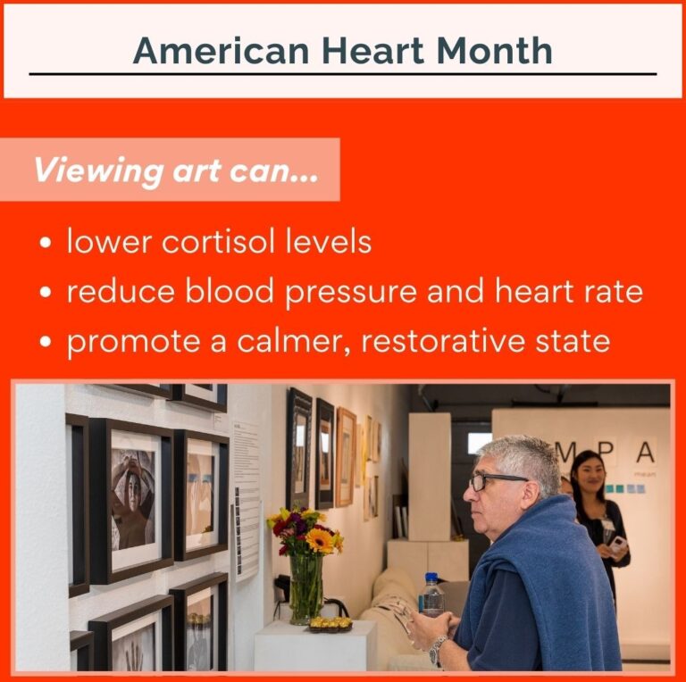 February is American Heart Month, a time dedicated to raising awareness about cardiovascular health and encouraging habits that support a strong, healthy heart. It is well-documented that heart health can be improved by not only creating art, but also simply viewing it. Creative activities like painting, drawing, and crafting can help lower stress, reduce blood pressure, and support emotional well-being, all of which are key factors in heart health.