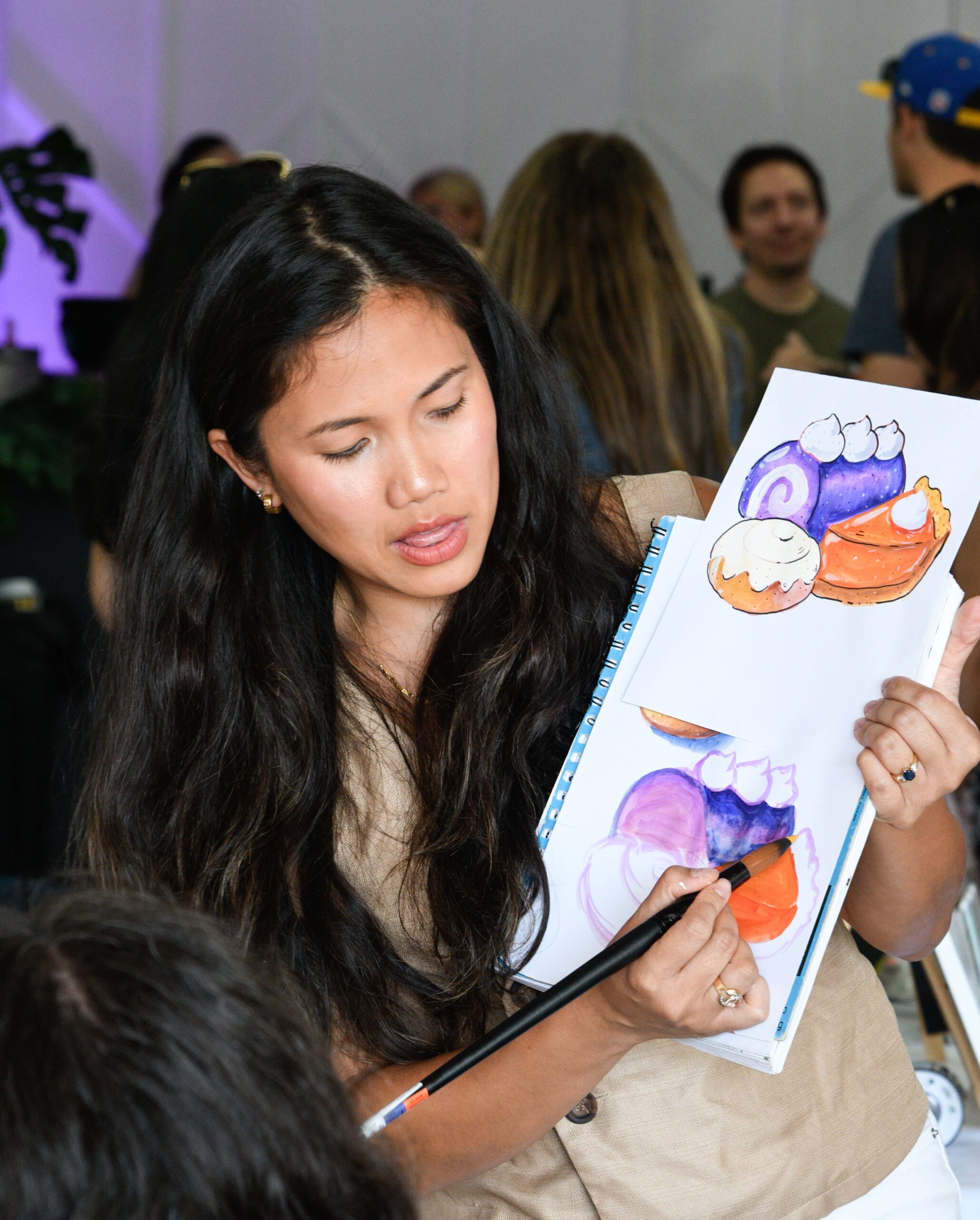 Led by artist Claudine Castro—a UC Irvine Studio Arts graduate who rediscovered her creative calling after years in the wellness industry—the “Cozy Baked Goods” gouache painting workshops embodied the event’s theme of art as transformation. Castro’s own journey from abandoning art due to societal pressures to embracing intuitive, joy-filled creativity made her the ideal guide for nervous beginners taking their first steps into artistic expression. Castro’s is a powerful example of the event’s theme—overcoming adversity and finding your way back to what matters most to you. The center of what The Art Spread represents. That’s the magic of accessible art education: it demystifies the creative process and reminds people that art isn’t reserved for the “talented few.” It belongs to anyone who wants to participate and is willing to pick up a brush and try.
