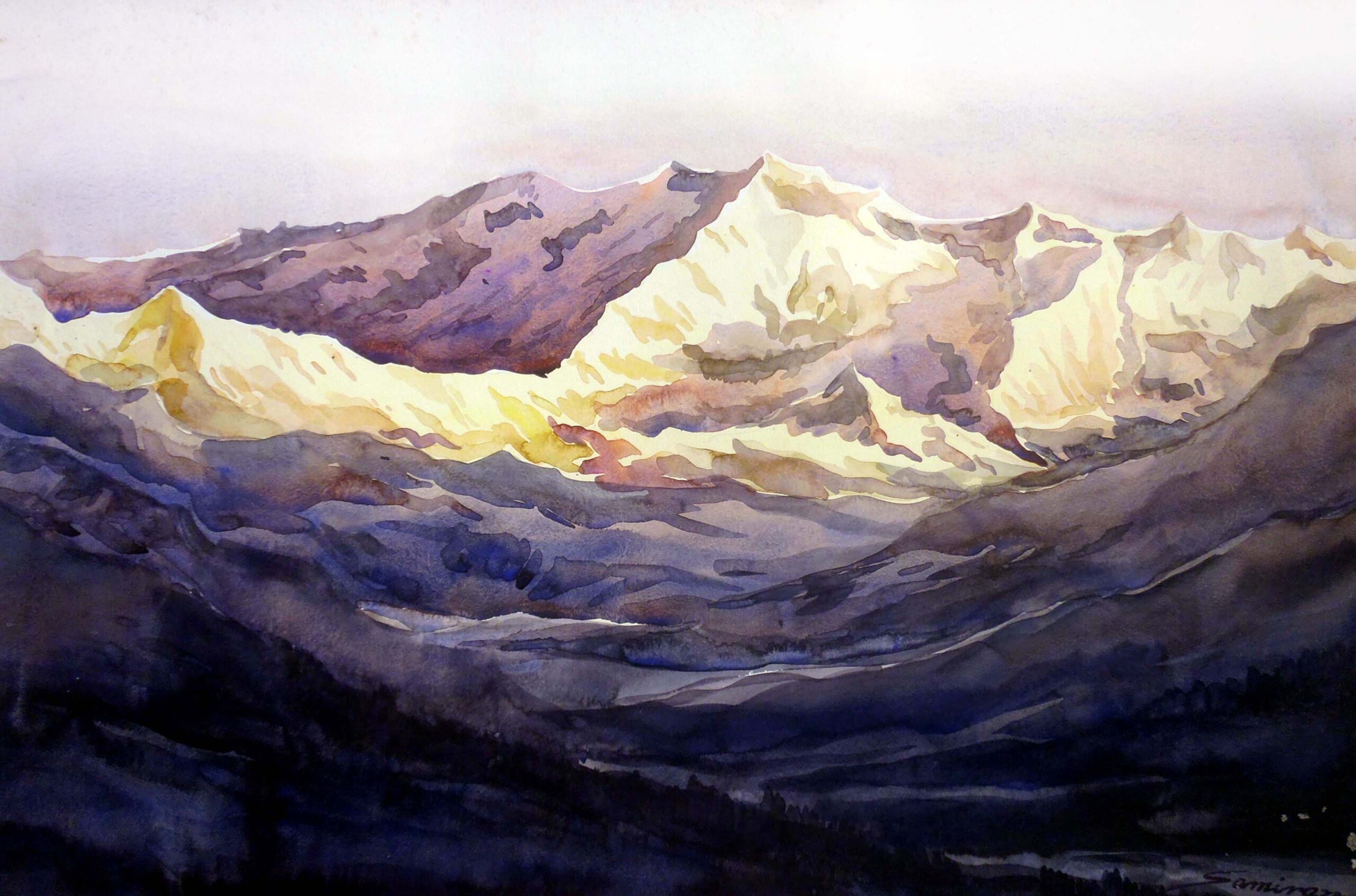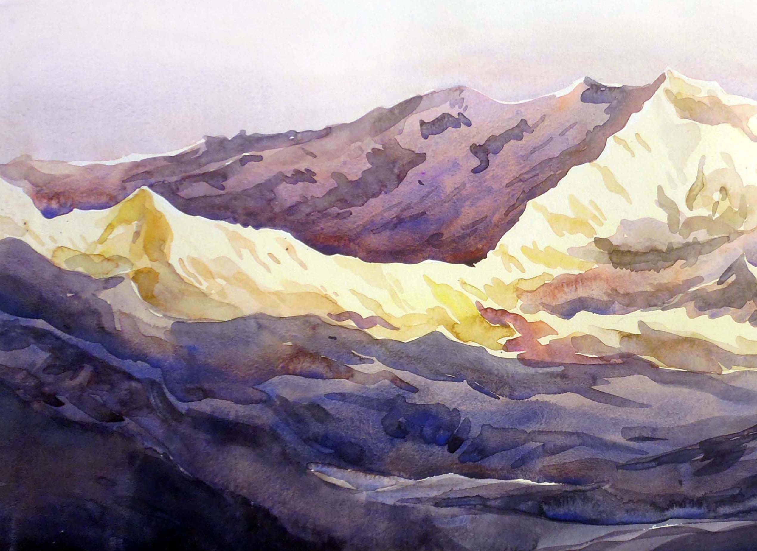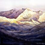 Kanchenjunga is world’s third-highest peak in world, I get inspiration from the Majestic beauty of Kanchecenjuga , I frequently travel to Himalaya with my paint box and canvas for beauty of nature , Early morning Kanchenjunga is always inspire me for Golden Sunlight reflect on snow peaks. Mind blowing early morning The Himalayan peaks, especially Kanchenjunga, moved me with their silent grandeur vast, timeless, and sacred. In painting them, I tried to echo the quite awe they awaken in the soul.