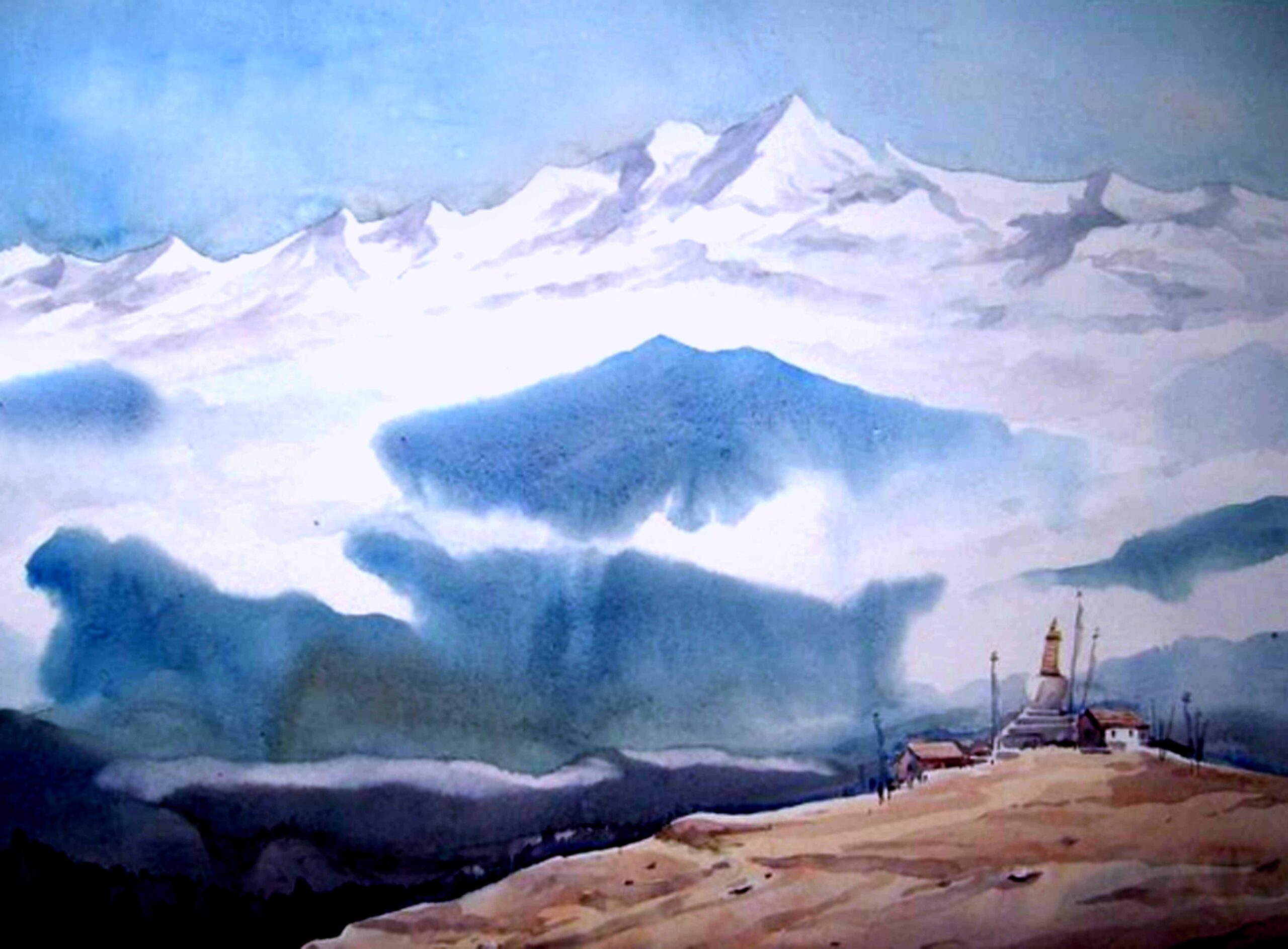 The clouds drifting over the Himalayas moved me- the way they wrapped the mountains and peaks in mystery and grace. Their beauty inspired me to paint, not just the mountains, but the magic they carried.