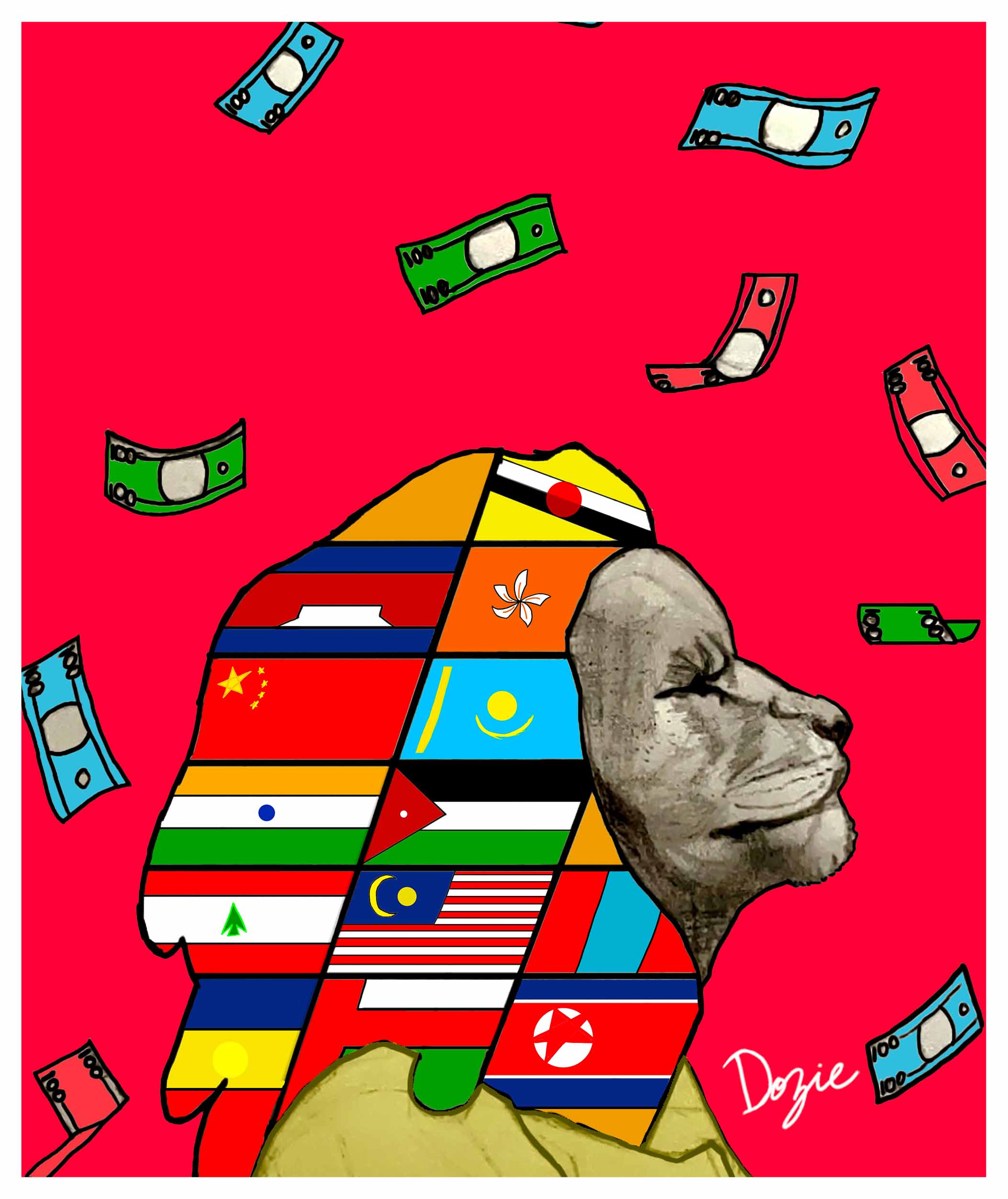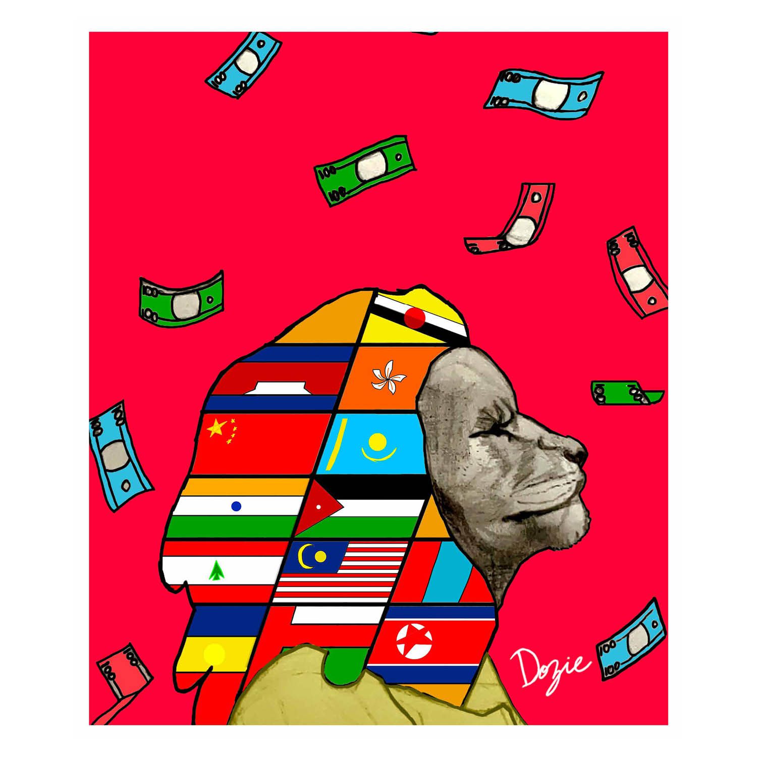 Inspired by the Mara Phone—Africa’s first smartphone and a symbol of innovation and pride—The Mara Collection celebrates global identity and unity. At the heart of this powerful artwork is a majestic lion, representing strength and resilience. Its mane, a vibrant tapestry of flags from Africa, North America, South America, and Europe, speaks to the beauty of cultural diversity and shared humanity.
