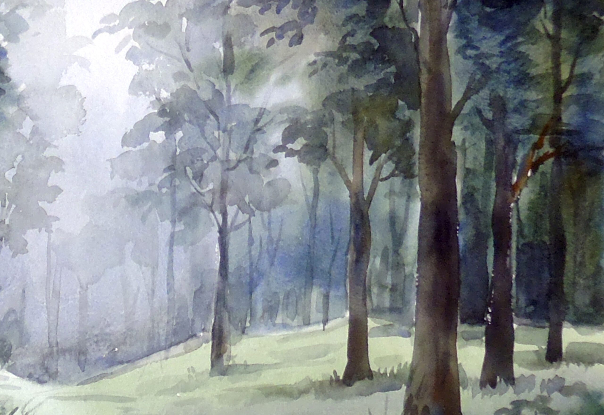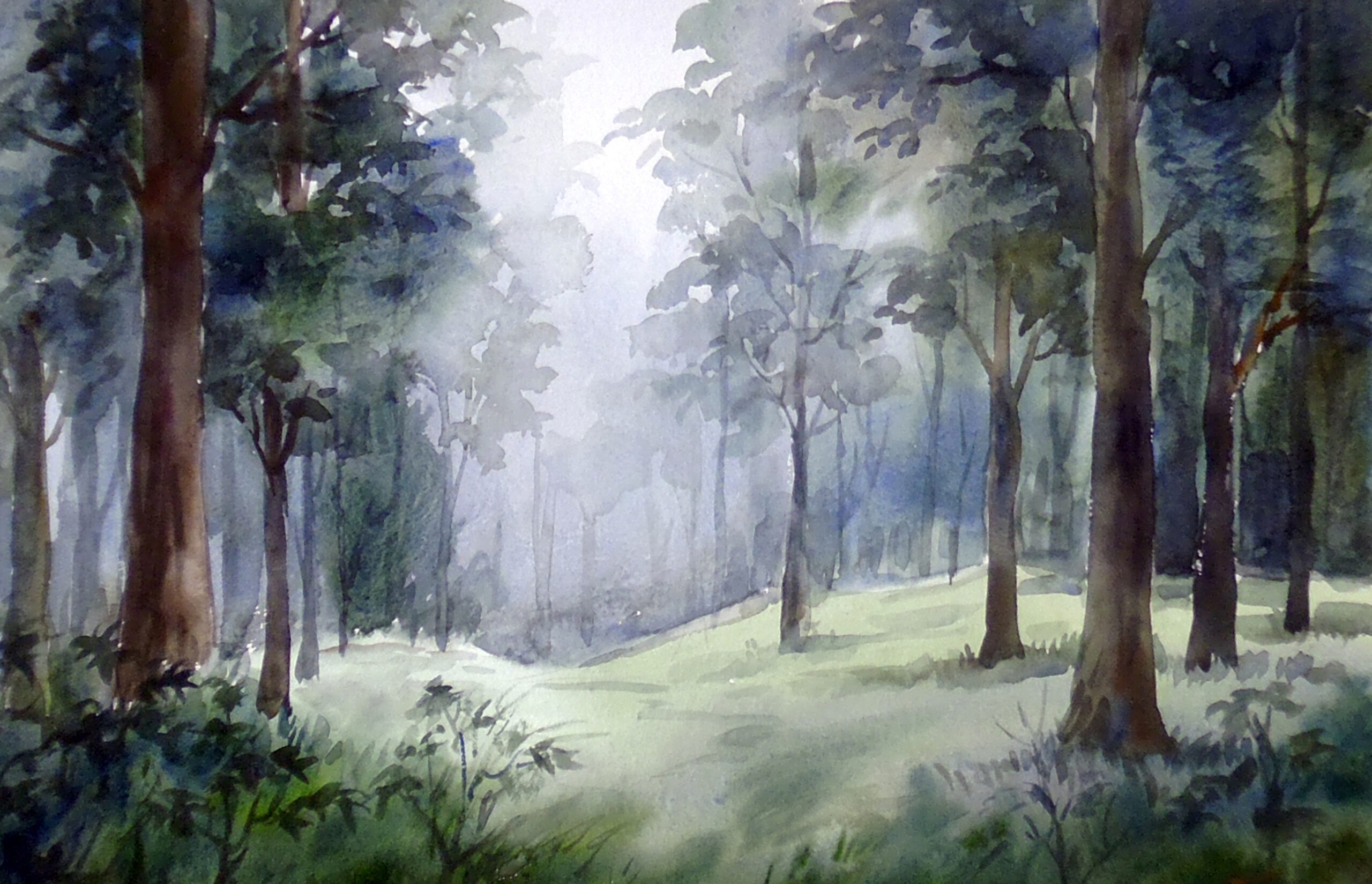 I love painting a foggy misty forest environment with tall trees and leaves, creating a dramatic nostalgic environment. In my Himalayan travels I like to walk and observe mountain forest.