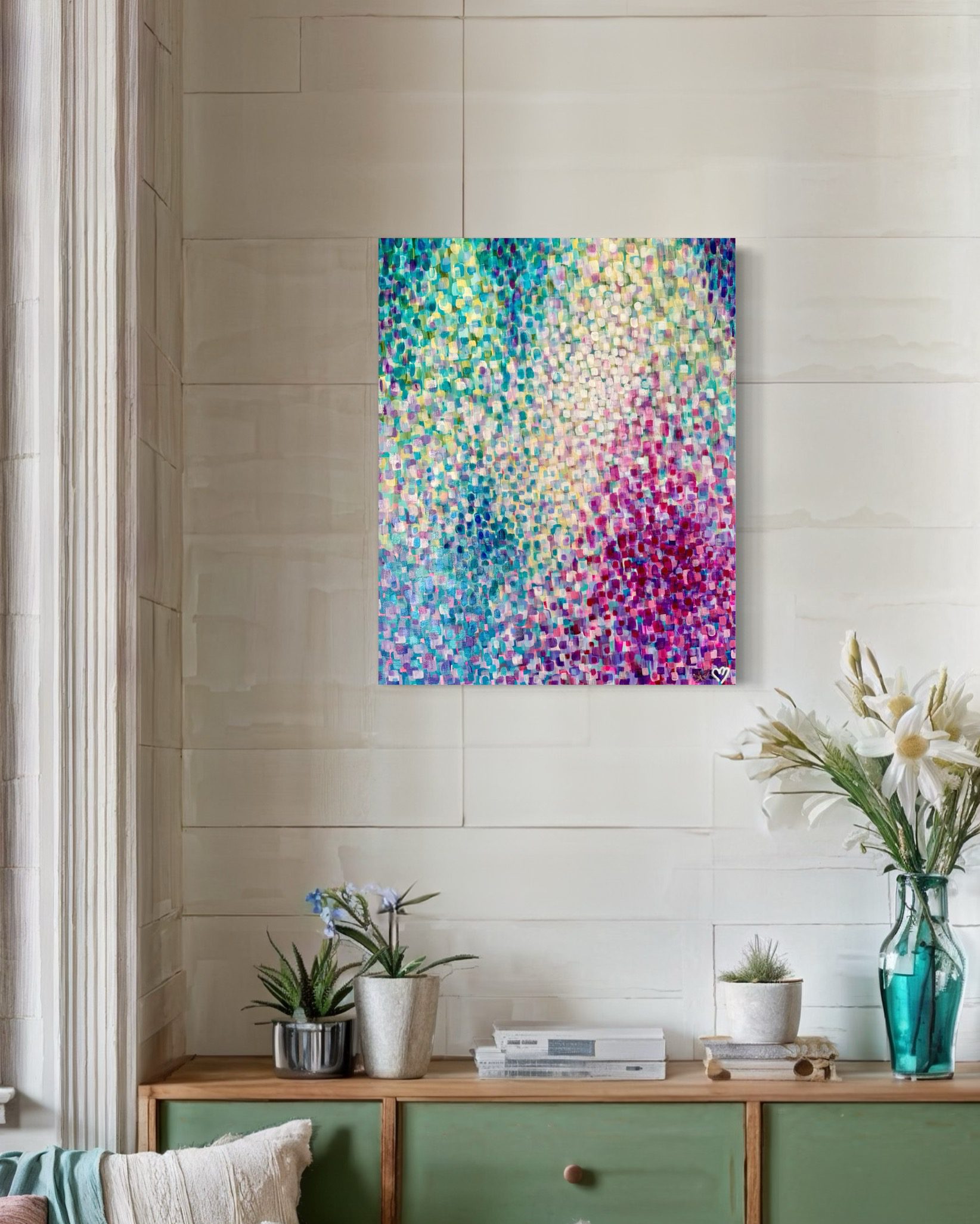 Crystal McDonald is a Southern California-based abstract artist known for her vibrant use of color, rich textures, and playful, expressive style. Her inspiration comes from travel, nature, photography, and a strong commitment to well-being.